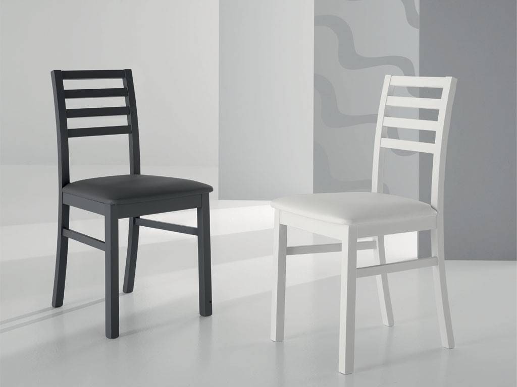 Sedia con struttura in legno laccato e seduta in ecopelle.