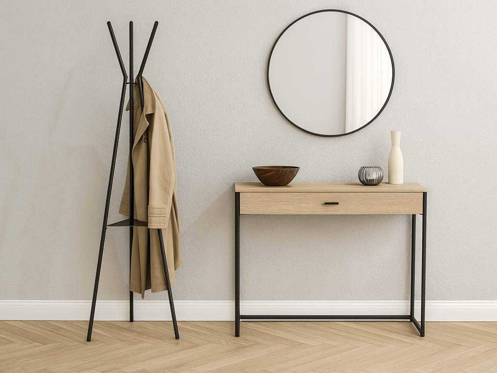 Grazie alla sua struttura compatta e slanciata, questo appendiabiti da terra si adatta perfettamente anche a ingressi di piccole dimensioni, corridoi o angoli da valorizzare.