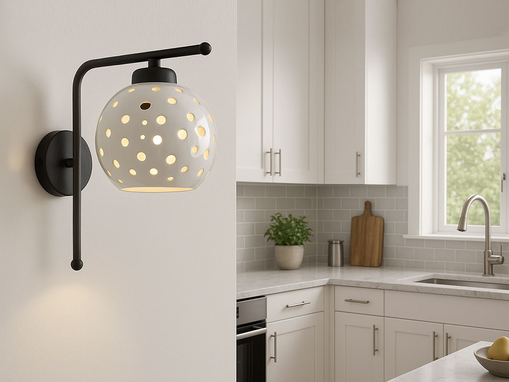 L’applique in ceramica con struttura in metallo è una lampada da parete moderna ed elegante. Il suo design compatto permette di inserirla facilmente in diversi ambienti della casa. Il paralume in ceramica Ø 15 cm, finemente forato, diffonde la luce in modo uniforme, creando un effetto decorativo unico sulla parete. La luce calda che attraversa i piccoli fori regala un’atmosfera accogliente e rilassante.