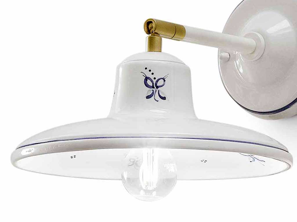 Applique ceramica decorata, applique ceramica bianca, applique in ceramica vintage, ideale come applique per cucina classica. Applique da parete in ceramica classica, con colori netti e superfici lucide, per arredamento classico moderno. Dettagli di supporto in Ottone.