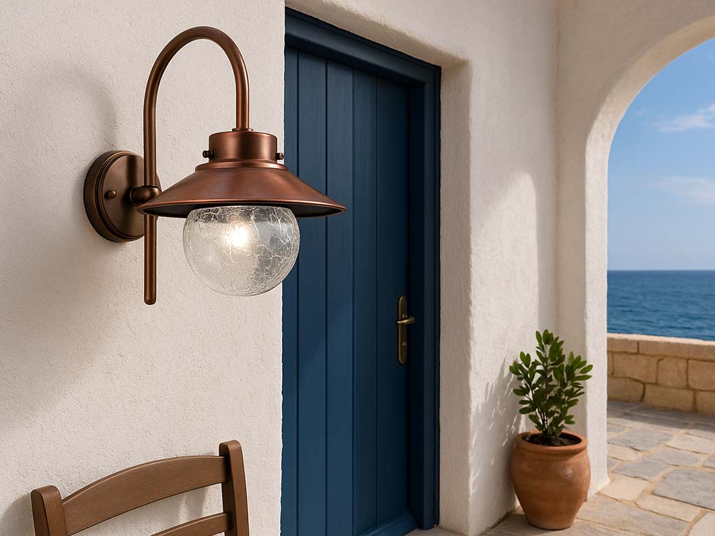 Applique da esterno vintage, applique da esterno con struttura in ottone, applique da esterno dalle linee classiche, ideali come lampade da esterni. Linea di lampade per esterno con struttura in ottone, finitura brunito rame antico o brunito verde e vetro cracklè trasparente. Lampade di alta qualità con finiture che durano nel tempo, particolarmente indicate per ville, case al mare o eleganti dimore storiche di pregio. Ogni articolo viene realizzato con cura e passione, viene valorizzato da piccoli tratti distintivi, caratteristiche tipiche ormai esclusive della maestria artigiana. Dimensioni: L 33,5 x P 43,5 x H 42 cm max 70W E27 IP44 220-240V (lampadina non fornita) Colori e Finiture: BRRA - brunito / rame antico (modello in foto) BRVE - brunito verde (con pennellate di color Verde Rame) Vetro: vetro cracklè trasparente L'antichizzazione di questi prodotti è fatta manualmente pertanto la tonalità dell'ottone potrebbe avere sfumature diverse da quelle rappresentate in fotografia. Questi prodotti sono realizzati artigianalmente con materiali tradizionali e di qualità come l'ottone, sapientemente creati a mano per ottenere piccoli e grandi giochi di luce dal disegno unico e di alta qualità con finiture che durano nel tempo. Vetri, soffiati da maestri artigiani secondo antiche tecniche di lavorazione. Eventuali piccole imperfezioni sono da considerare quali pregi e tratti distintivi della ricercata lavorazione e non difetti di fabbricazione. Prodotti da esterno, sono trattati per vivere anche vicino al mare. Prodotto artigianale realizzato in Italia