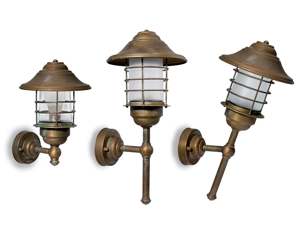 Applique da esterno vintage, lampade ottone anticato, ideali come luci da esterno o illuminazione giardino.