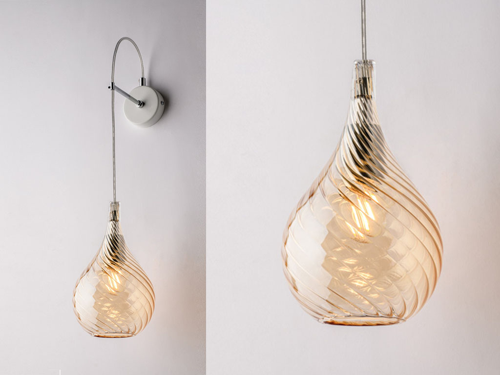 L’applique in vetro soffiato è una lampada da parete elegante e raffinata, ideale per illuminare e valorizzare qualsiasi ambiente della casa. Grazie al suo diffusore in vetro soffiato, questa lampada unisce estetica e funzionalità, diventando un vero elemento d’arredo. Il paralume presenta una caratteristica lavorazione a spirale che crea affascinanti giochi di luce, rendendo l’atmosfera calda e accogliente. Design sofisticato e materiali di qualità Realizzata con vetro soffiato di qualità, questa applique coniuga la tradizione italiana con un design moderno e ricercato. La montatura a parete, discreta e minimal, permette di valorizzare la forma sinuosa del paralume, che diventa il protagonista dello spazio. Caratteristiche tecniche Dimensioni: H 60 cm – L 14 cm – P 21 cm Attacco lampadina: 1xE14 Potenza massima: 42 Watt Materiale: vetro soffiato lavorato artigianalmente Cavo elettrico regolabile e accorciabile in fase di montaggio. Installazione: Applique da parete con cavo e rosone a muro Tre colorazioni disponibili Il diffusore è disponibile in tre tonalità per adattarsi a diversi stili di arredo: Trasparente – per un look essenziale e luminoso Ambra – per creare un’atmosfera calda e avvolgente Grigio – elegante e moderno, perfetto per ambienti contemporanei Ogni variante valorizza la texture del vetro, che diffonde la luce in modo morbido e naturale.