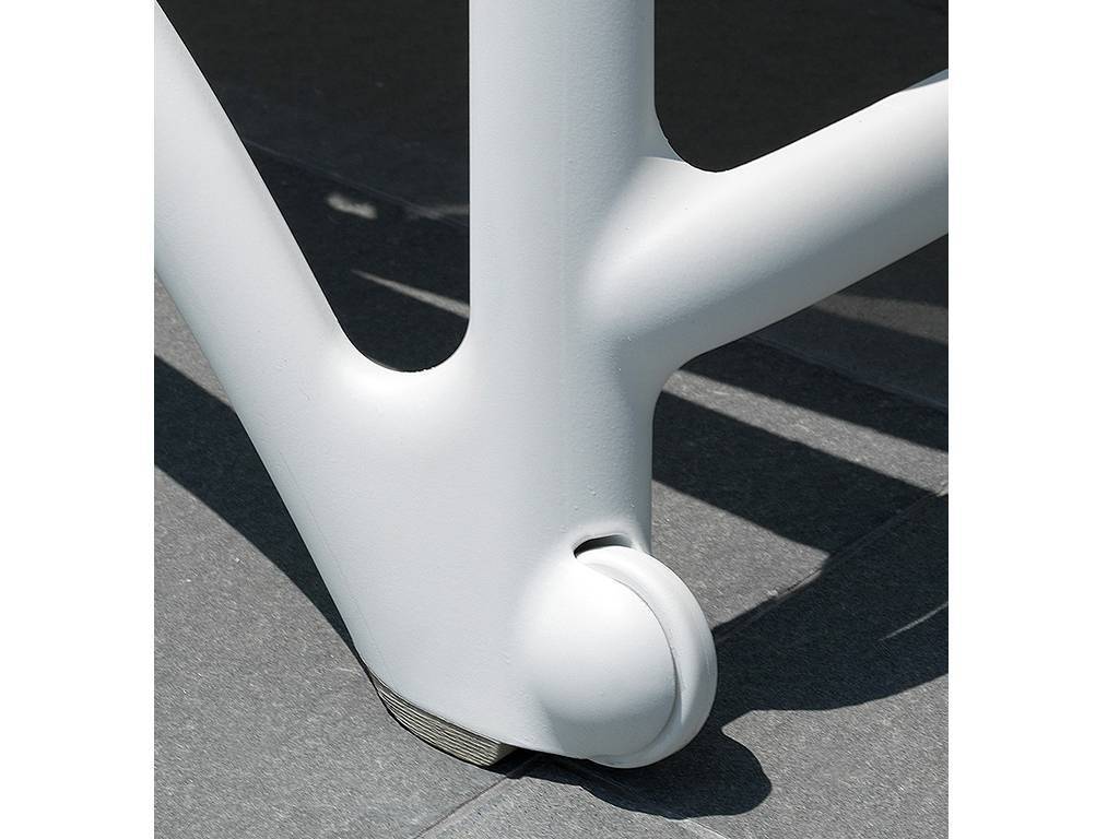 Impilabile, schienale reclinabile in 4 posizioni, dotato di rotelline.