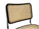 Sedia con struttura in tubo di metallo cromato diametro mm 25x2 ad alta resistenza con tappi saldati. Sedile e schienale in 'paglia di Vienna' con bordi in faggio laccato nero o naturale.