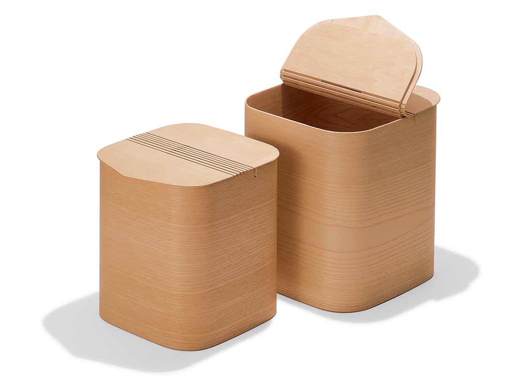 Cesto portabiancheria, portabiancheria design, ideali come cesta biancheria, scatole in legno portaoggetti o cestini portaoggetti da bagno. Contenitori quadrato con coperchio, realizzati in legno curvato di frassino.