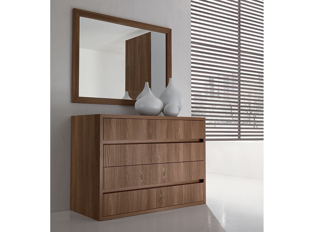 Comò a 4 cassetto, in diverse finiture materico legno o colori laccati opachi lisci (specificare in fase d'ordine il colore laccato desiderato).
