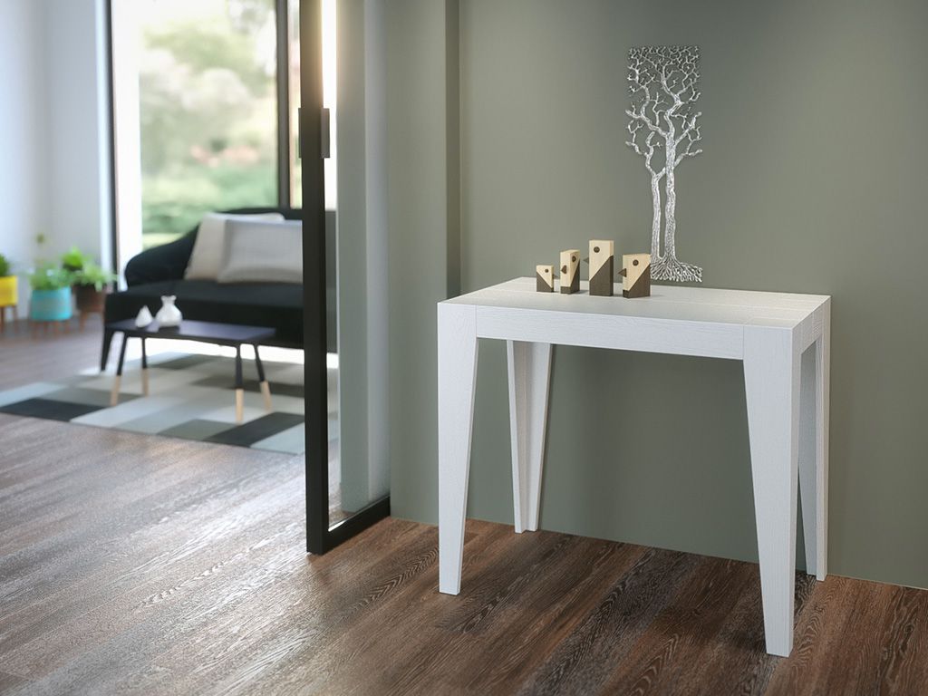 Consolle allungabile ideale per chiunque abbia problemi di spazio in casa, ma nel momento del bisogno desidera far accomodare a tavola ospiti da 8 a 12 persone.