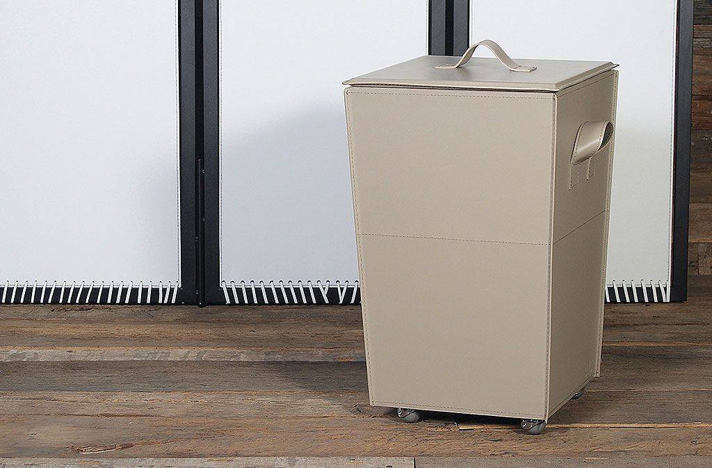Leder behälter geformte vase, mit Holzboden mit gummireifen.