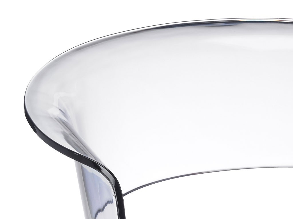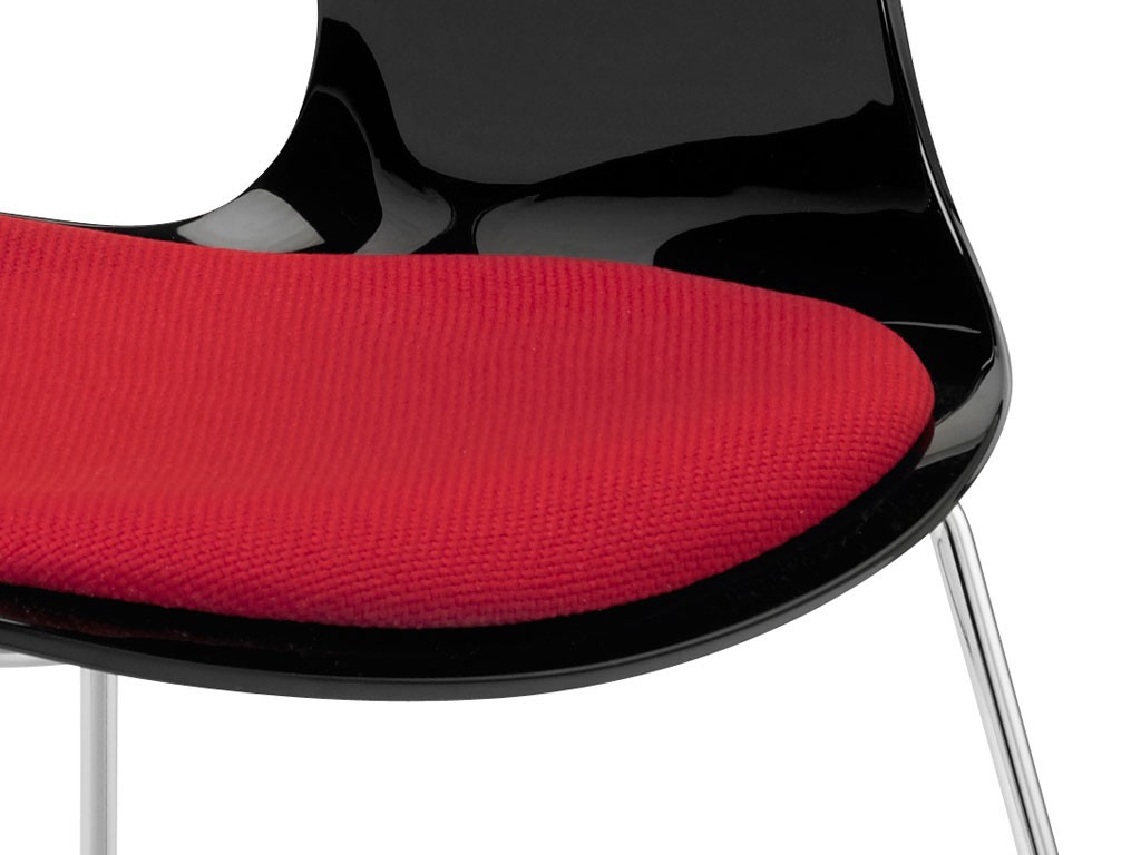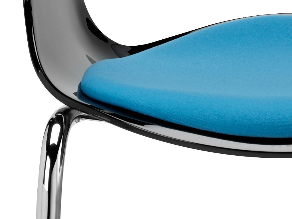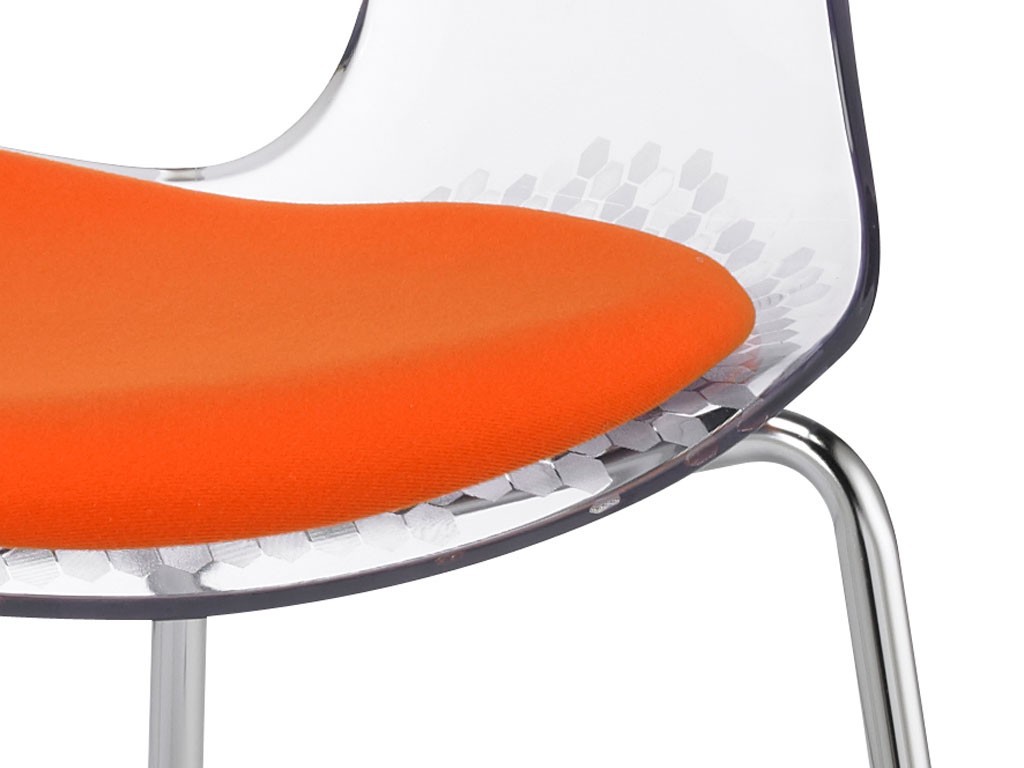 Stuhl mit Aufbau aus Polykarbonat. Kissen an der Sitzung befestigt. Geschaukelte Struktur: Rohr aus verchromtem Stahl (zu montieren).
