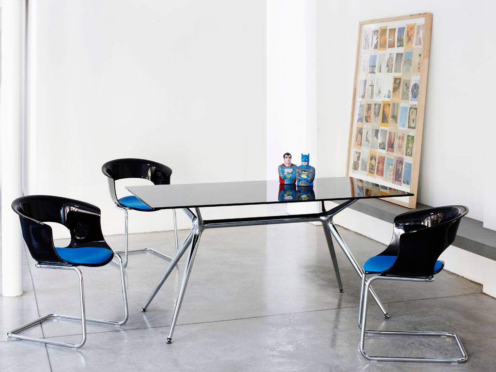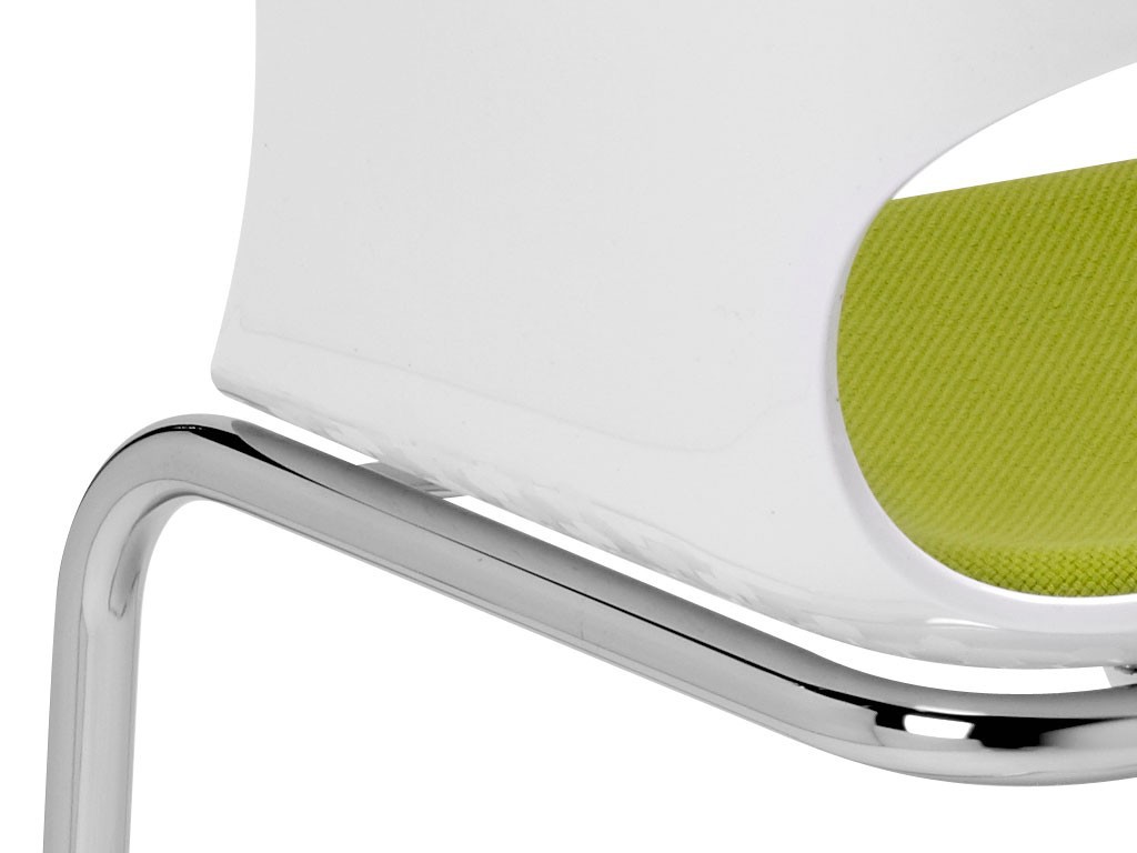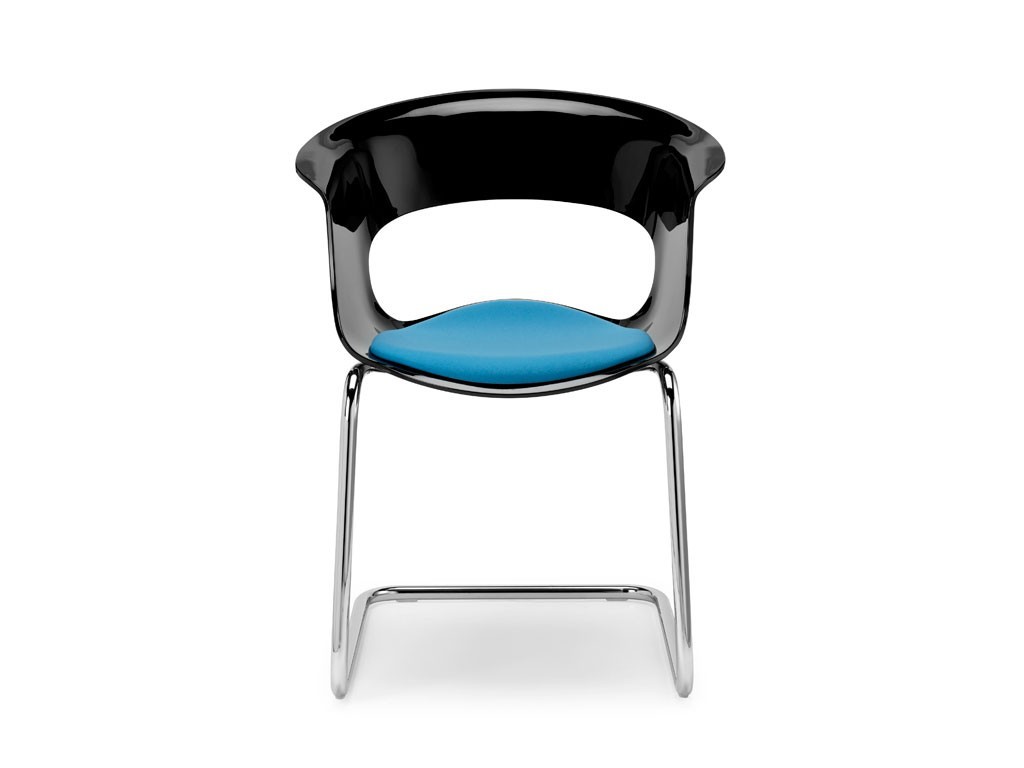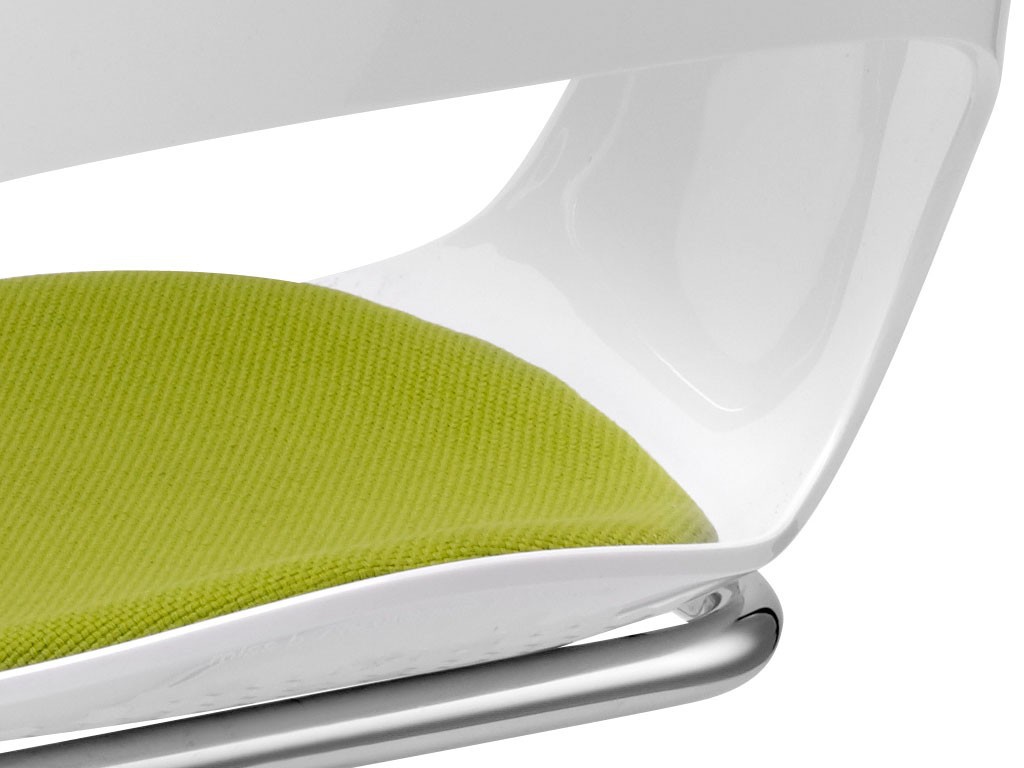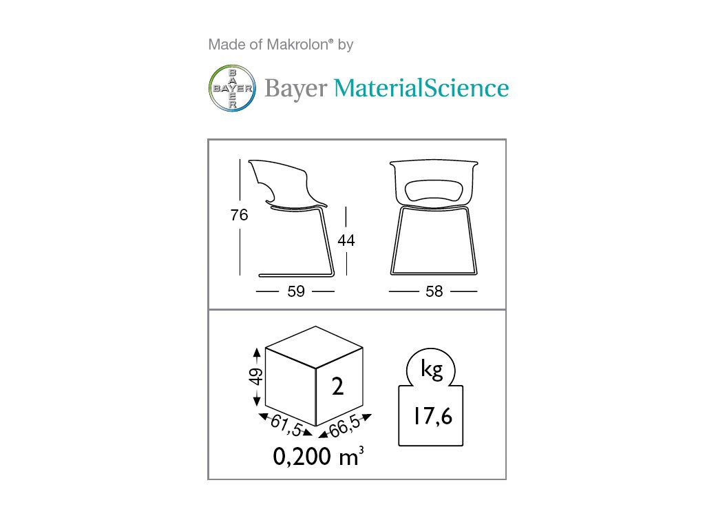 Stuhl mit Aufbau aus Polykarbonat. Kissen an der Sitzung befestigt. Geschaukelte Struktur: Rohr aus verchromtem Stahl (zu montieren).