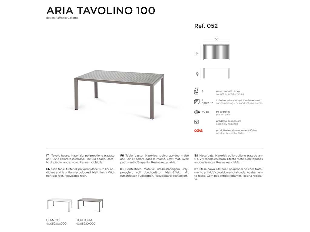 Garten Tisch, Tisch Balkon, Plastik Tisch Balkon, perfekt als Tisch Polypropylen, Rechteckiger Tisch oder Tisch 100x60. Tischchen 100x60 cm, aus Polypropylen von erster Qualität (anti-UV und im Ganzen gefärbt ), demontierbar, mit rutschfesten Füßen