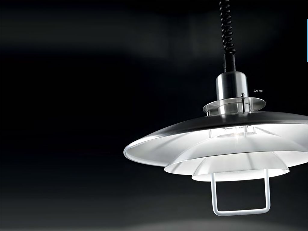 Lampe in skandinavischem Stil mit Gestell und Lichtverteiler vollkommenaus Aluminium, außen gebürstet oder matt weiß und innen weiß lackiert. Mit up&down-System versehen.