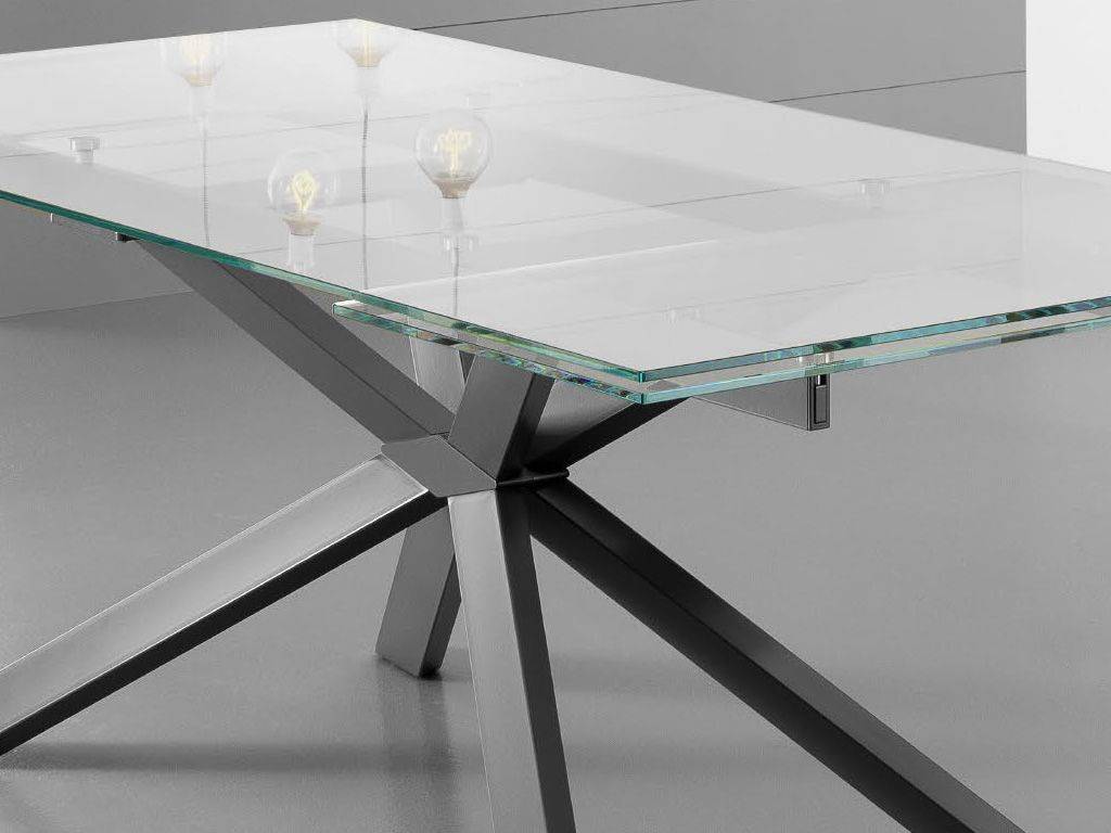 OSAKA VETRO ausziehbar Tisch mit Platte aus glas und Basis aus Metall