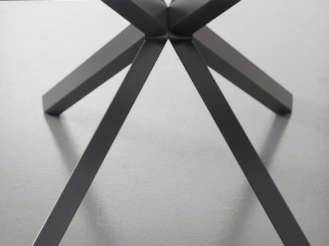 Die Basis hat eine Struktur aus Metall mit vier Arme, die sich in doppel-x überschneiden. Das schafft einen innovativen, vertrauenswürdigen und stabilen Stil.