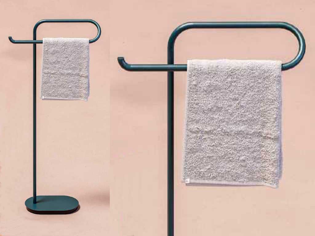 Platzsparender, bodenstehender Handtuchhalter, Handtuchhalter aus Stahl AISI 304 in verschiedenen Farben, ideal als Designer-Badezimmerzubehör.