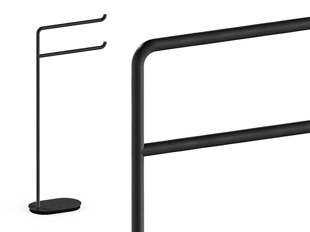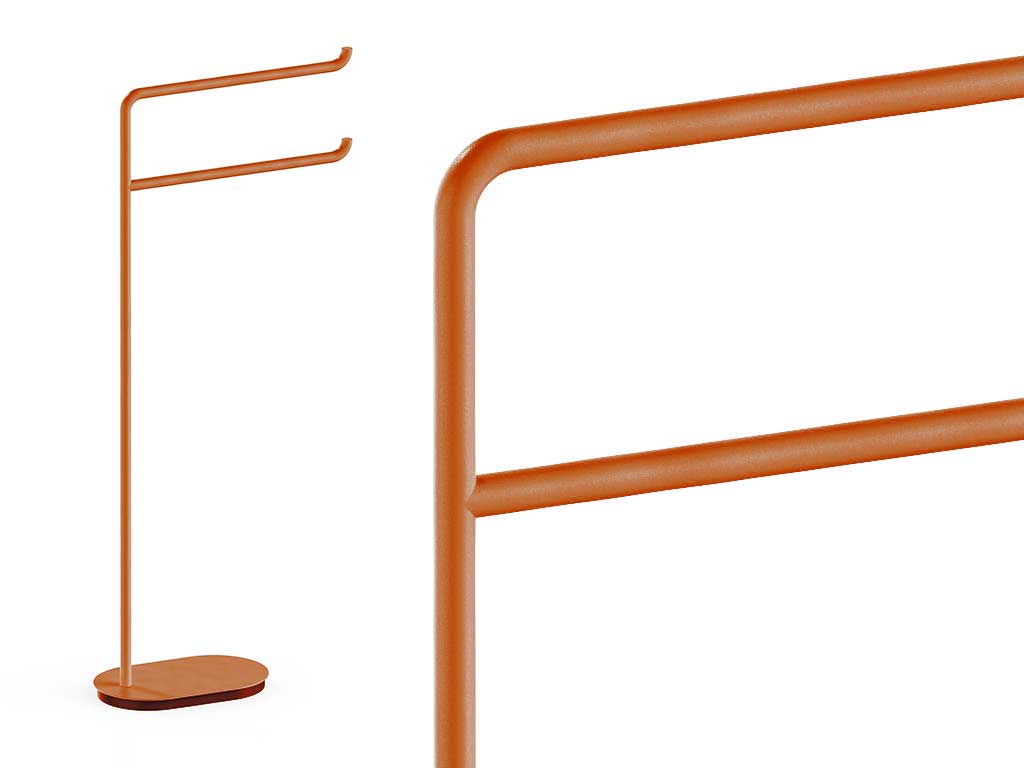 Platzsparender Handtuchhalter für das Badezimmer, Designer-Handtuchständer mit lackiertem Messingrahmen in verschiedenen Farben, ideal als Handtuchhalter für das Badezimmer. Abmessungen: SM171/1 - Basis B.14 T.23 - L. 14 H. 82 T. 34 cm Bodenhandtuchhalter mit elegantem und funktionellem Design, ideal für moderne und raffinierte Badumgebungen. Seine leichte und minimalistische Struktur besteht aus lackiertem Metall in einer Reihe von raffinierten Pastellfarben, die dem Raum einen frischen und fröhlichen Touch verleihen. Seine geschwungenen Linien und sein essentielles Profil machen ihn zu einem modernen Einrichtungsaccessoire, ideal für alle, die eine praktische Lösung suchen, ohne auf Ästhetik zu verzichten. Der bodenstehende Handtuchhalter fügt sich harmonisch in den Raum ein und schafft eine entspannende und anspruchsvolle Atmosphäre. Dank seiner Stabilität und Vielseitigkeit eignet er sich für verschiedene Arten von Bädern, vom häuslichen Spa bis zum Luxushotel. Ein Einrichtungsaccessoire, das Form und Funktion verbindet und einen Alltagsgegenstand in ein unverwechselbares Stilelement verwandelt. In Italien hergestellt