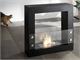 Kamin aus matt schwarz oder weiß lackiertem Metall und gehärtetem Glas.Brenner von 1,5 Liter und Flamme-Aufsichtsstrument.