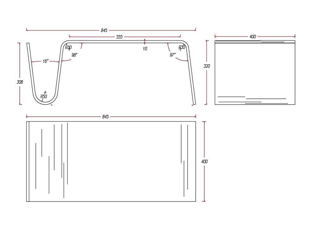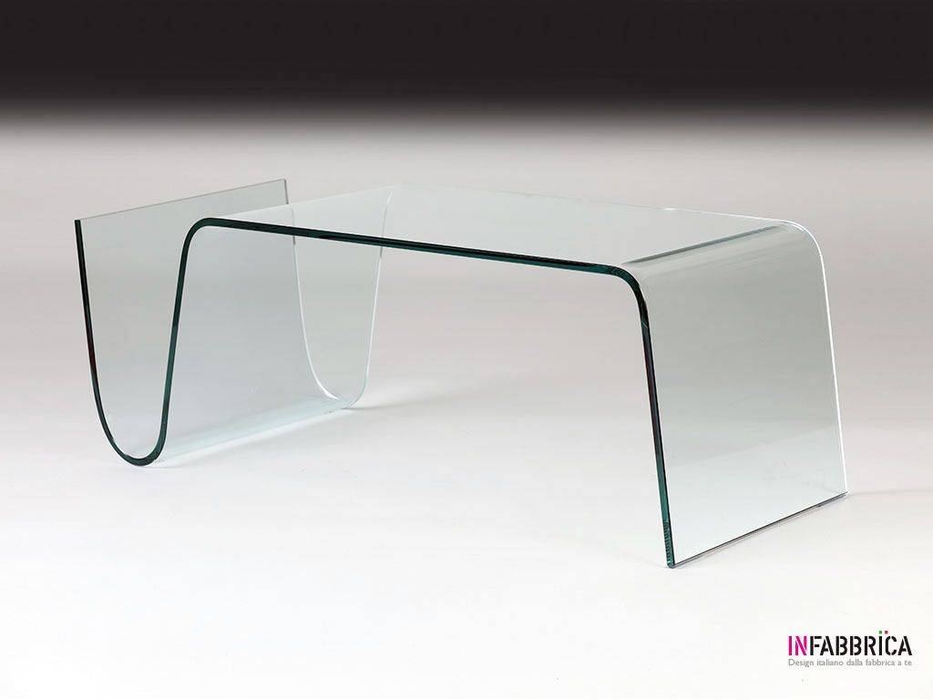 Dieser Tisch aus gebogenem Kristallglas hat eine rechteckige Form . Das Glas ist transparent und elegant gebogen. Das Design wirkt leicht und modern .