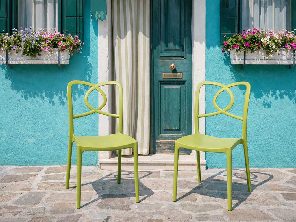Robuste und stapelbare Stühle für Innen- und Außenbereiche