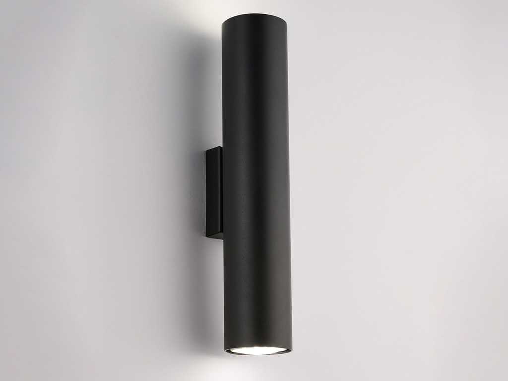 Die moderne GU10-Wandleuchte aus lackiertem Eisen mit zwei Lichtern ist eine elegante und funktionale Beleuchtungslösung, perfekt geeignet, um moderne und zeitgenössische Räume aufzuwerten. Dank ihres zylindrischen und minimalistischen Designs strahlt sie sowohl nach oben als auch nach unten und erzeugt einen raffinierten Lichteffekt an Innen- oder Außenwänden.