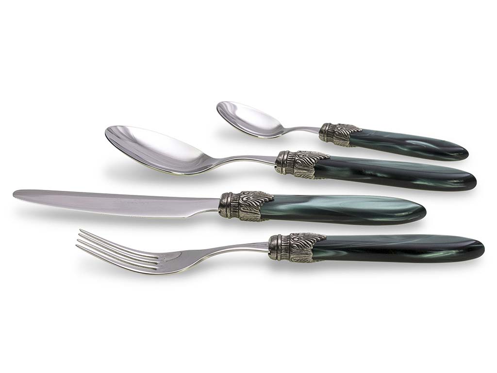 Set Posate: Set per 4 Persone 16 Posate,Colore: Verde Scuro