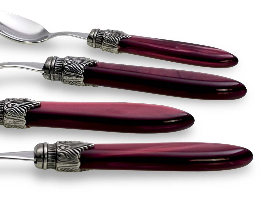 Set Posate: Set per 4 Persone 16 Posate,Colore: Bordeaux