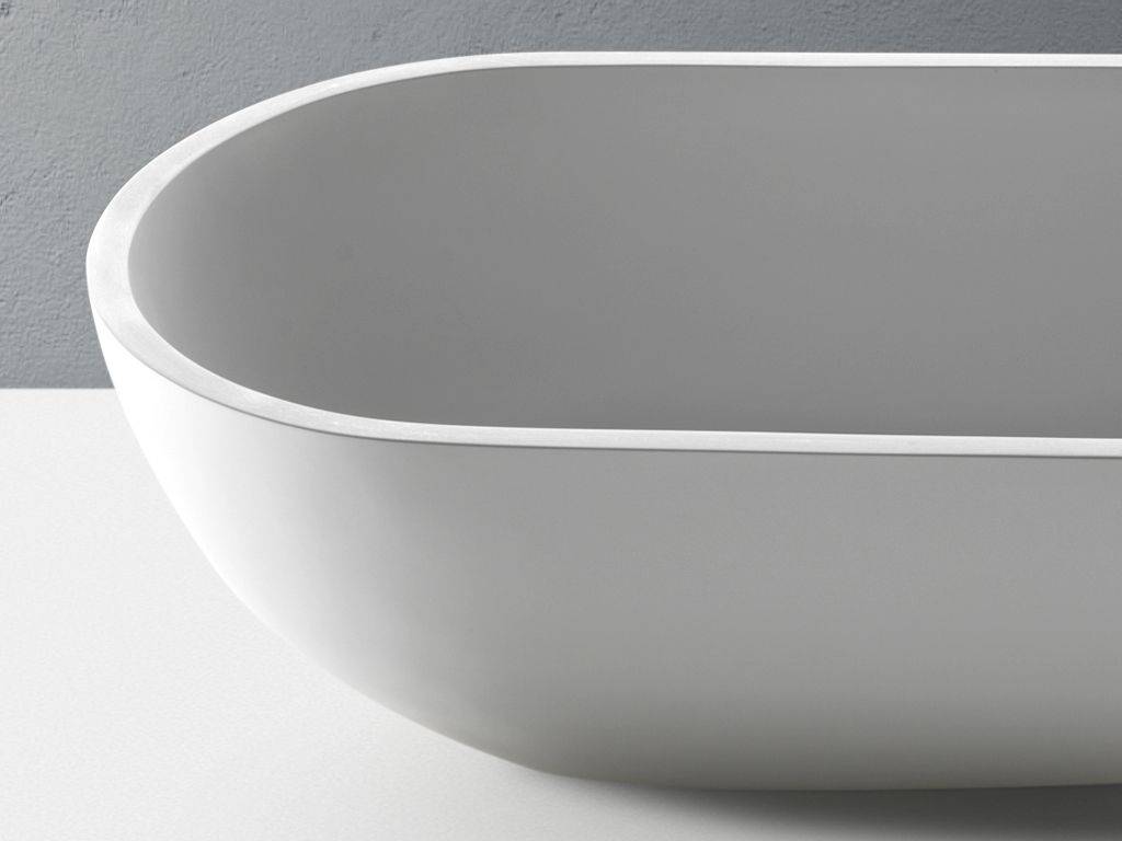 Elliptisches Waschbecken aus Acryl-Stein (ein gleichwertiges Material von Corian, mit einer Konsistenz ähnlich dem natürlichen Stein).