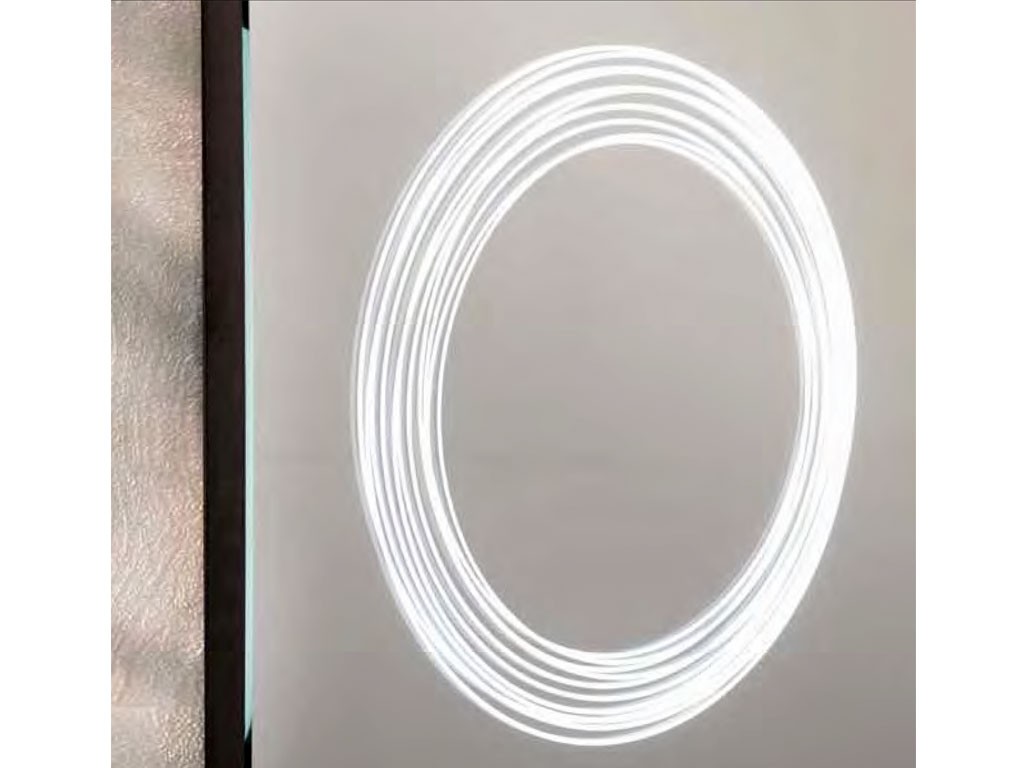 Wandspiegel beleuchtet LED mit runde Ecke aus glanzem Faden, mit Sandstrahlen überlagerte Fäden.Mit Rahmen aus Stahl INOX gestutzt, reversibel.
