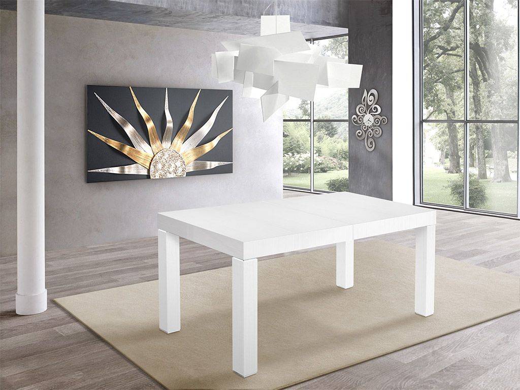 Ausziehbarer Tisch, Tisch Holz, Tisch 160x90, perfekt als Esstisch weiß oder Esszimmer Tisch. Holztisch hergestellt aus MDF mit zwei Verlänguerungen von 37. Verfügbare Farben:: Gebleichte Lärche.