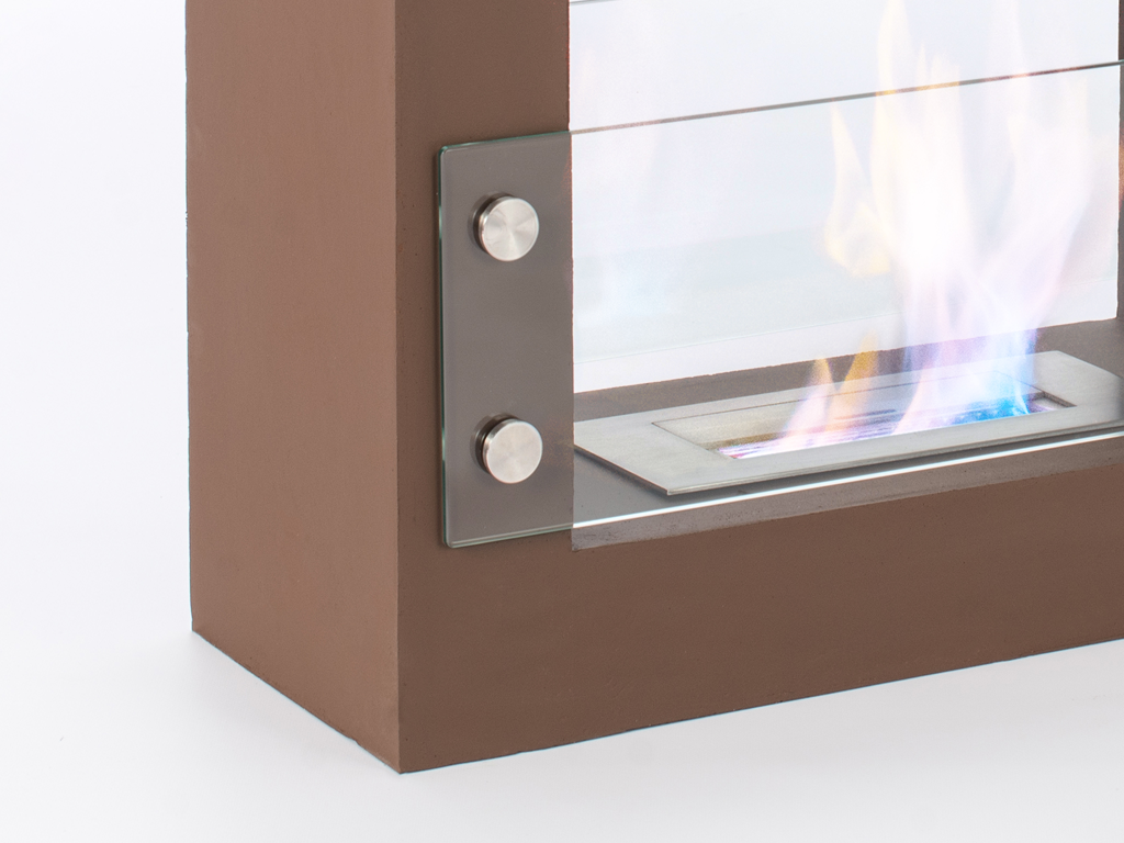 Boden Kamin mit rechteckigem Sockel in Magnesia (Zement-finish).Ideal als ein Möbelstück in Ihrem Wohnzimmer um eine warme Atmosphäre zu schaffen.
