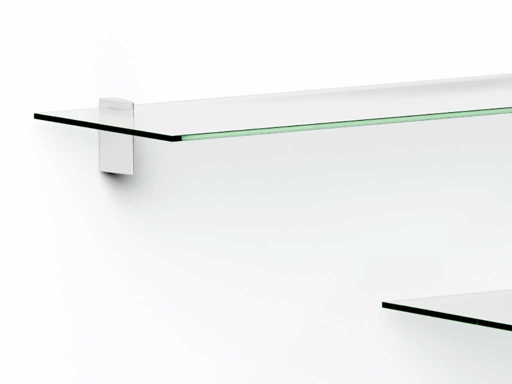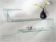 Glas Regal, Design Glas Regal, Konsolle Regal im Eingang, ideal als Wohnzimmer Glas Regal oder Konsolle Regal an der Wand. Geformtes Regal aus durchsichtigem Glas 6mm mit Stützen aus Aluminium