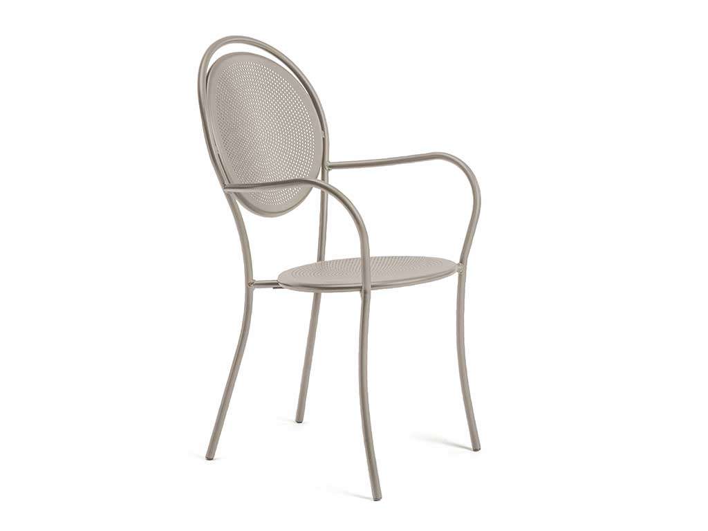 Romantik und Poesie des Alltags in einer Kollektion, die kreisförmige Elemente und schlanke Linien zu Tischen und Stühlen mit runden Platten, Rückenlehnen und Sitzfläche kombiniert, von einem vagen Pariser Akzent für einen Hauch von Klassizismus im Bohème-Stil mitten im Garten. Vage Retro-Geschmack, klassische und gemütliche Linie, abgerundete und gewundene Formen für Paris Stühle und Sessel, geeignet sowohl für moderne als auch traditionelle Umgebungen.