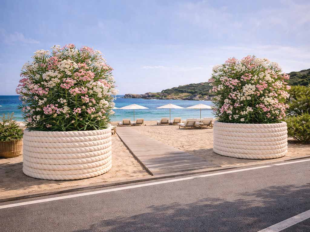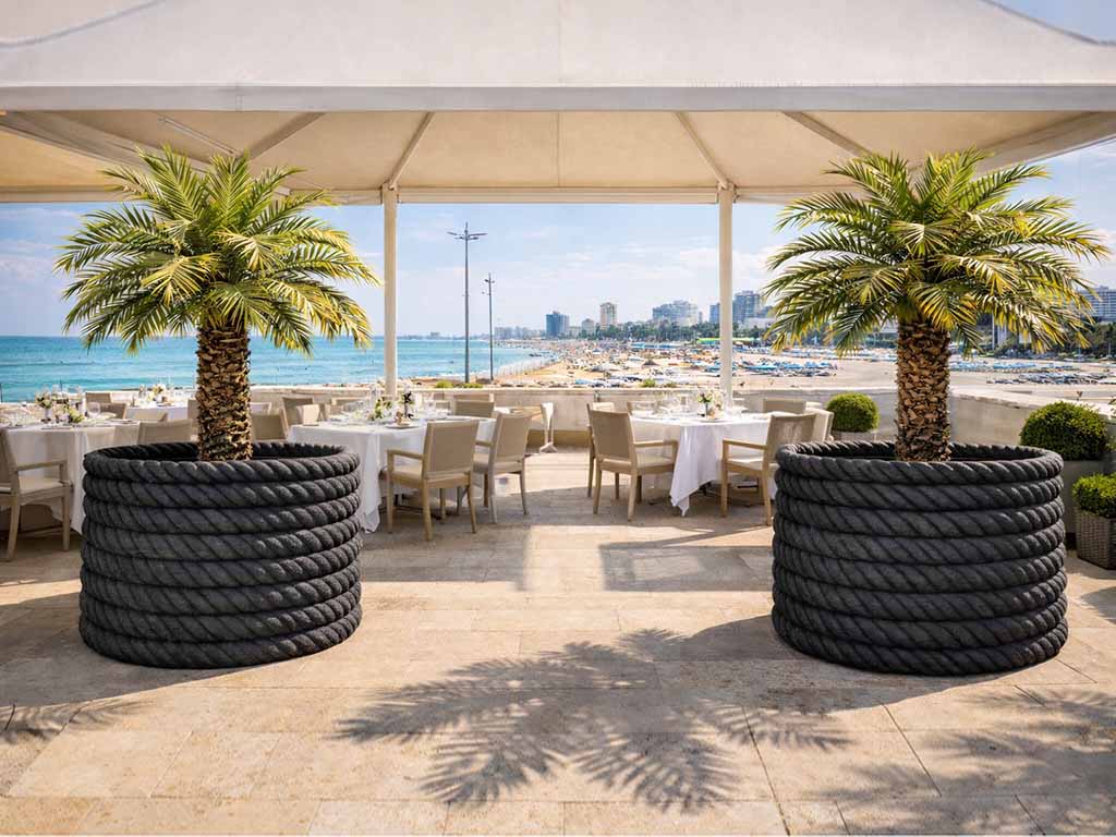 Das Design, inspiriert vom Geflecht maritimer Seile, erinnert an die Atmosphäre des Mittelmeers und passt harmonisch zu verschiedenen Umgebungen – von privaten Gärten über Terrassen bis hin zu Poolbereichen oder Eingängen von Villen und Resorts.