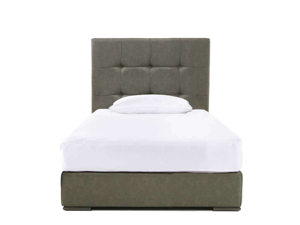 Gepolstertes Einzelbett, elegantes gepolstertes Bett mit zeitgenössischem Design, überzogen mit Kunstleder mit Vintage-Effekt, weich im Griff. Das Bett zeichnet sich durch das feine Kopfteil aus, das durch die Detaillierung der Nähte aufgeweicht wird. Erhältlich in 2 Versionen, Bett ohne Behälter oder Behälterbett. Abmessungen: Einzelbett cm L 212 T 103 Kopfteil H 141 cm - Bettboden cm 85 X T 195 cm Bettrahmen H 27 cm Fußhöhe 4 cm