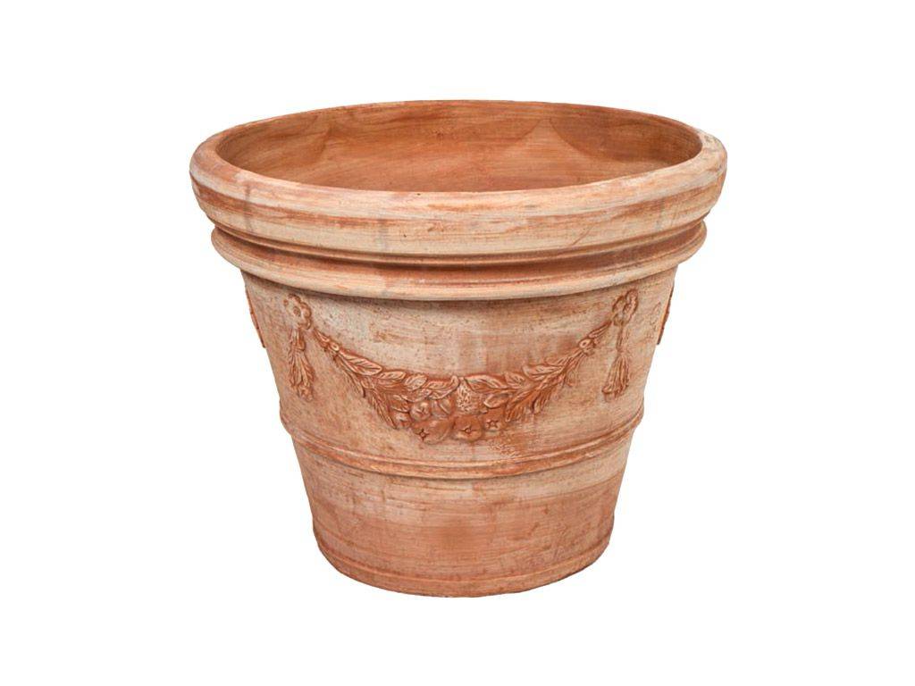Vase aus Tonerde, geschmückte mit Girlande, zur äußerlichen Anwendung.