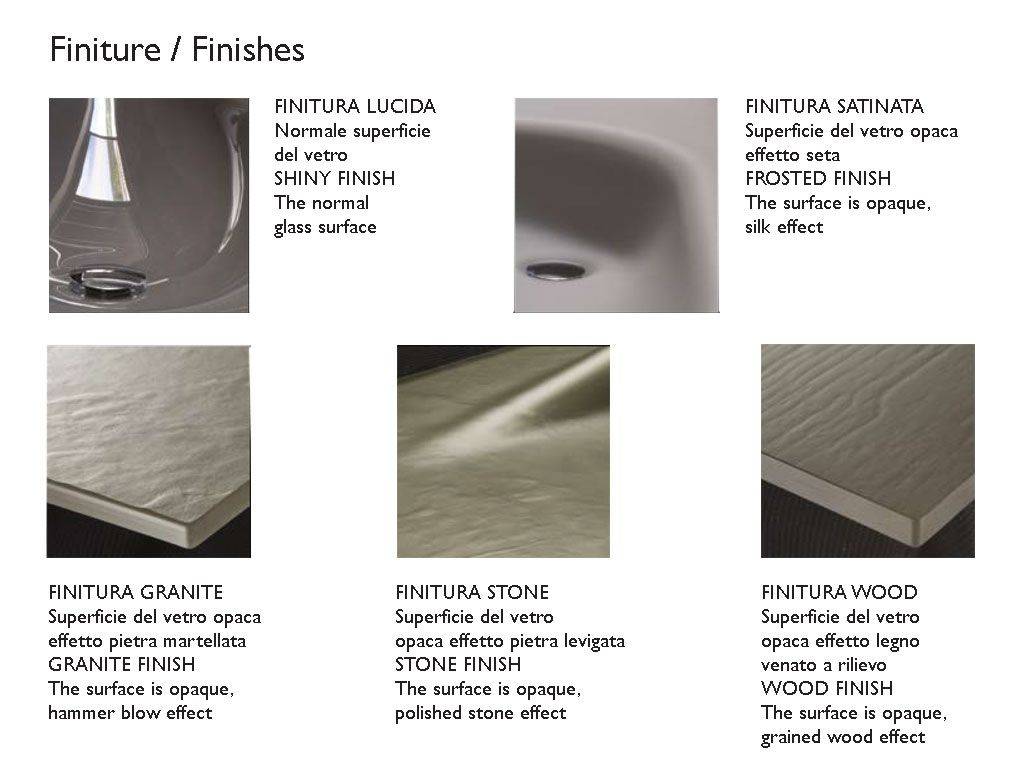 Vorteile: Das Glas ist ein Material mit einer niedrigster Saugfähigkeit, einfach zu abscheuern, resistent gegen Färbemittel und Säuren.