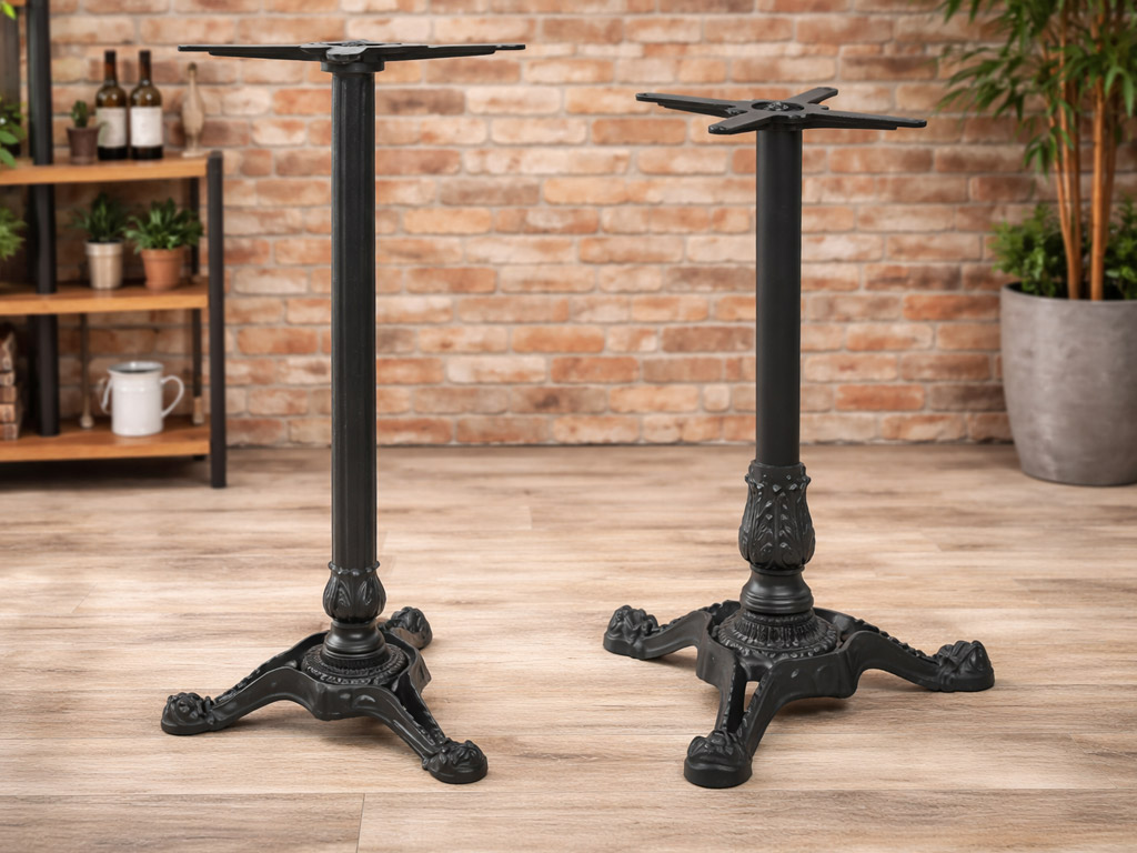 Sockel aus Gusseisen, Sockel im Liberty-Stil erhältlich mit 3- oder 4-Stern-Fuss, Sockel aus lackiertem Gusseisen, mit dekoriertem Boden und Säule in zwei verschiedenen Höhen erhältlich. Besonders geeignet für Kaffeetische oder Bistrotische für Räume und Bars.