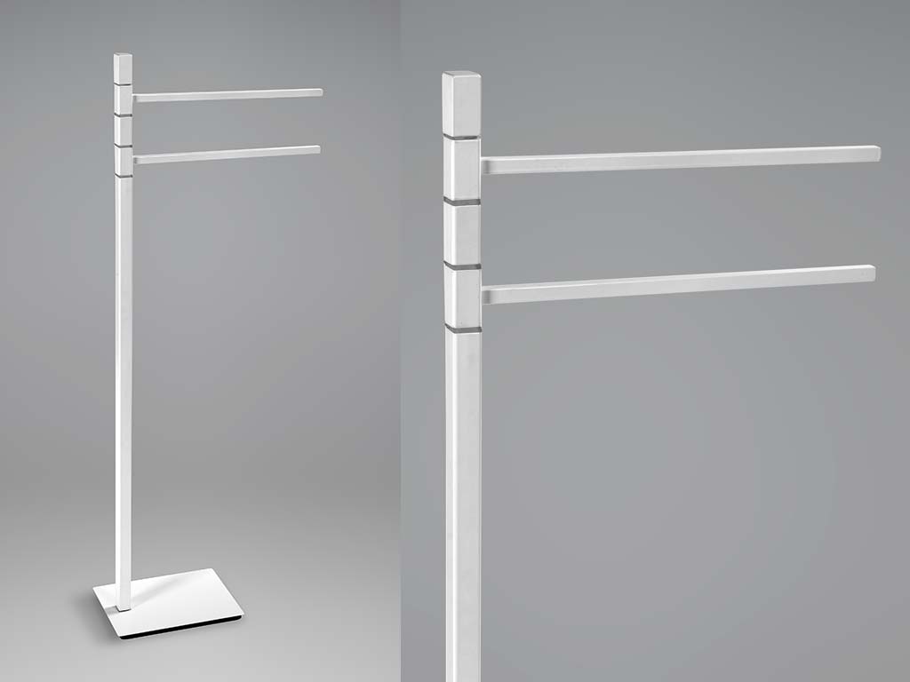 Handtuchhalter für das Badezimmer, Handtuchhalter für den Boden, Handtuchhalter aus verchromtem Stahl, schwarz oder weiß, ideal als Badezimmerzubehör. Die Stärke dieser Produkte liegt in der vollständig handwerklichen Fertigung, die in Italien durchgeführt wird. Die verwendeten Materialien sind Messing und Stahl, die die Unveränderlichkeit des Produkts im Laufe der Zeit garantieren. Abmessungen: B34 x T15x H89 cm - Sockel L15 x T21 cm Materialien und Oberflächen: Edelstahl 430 - verchromt, schwarz lackiert oder weiß matt. In Italien hergestelltes Produkt