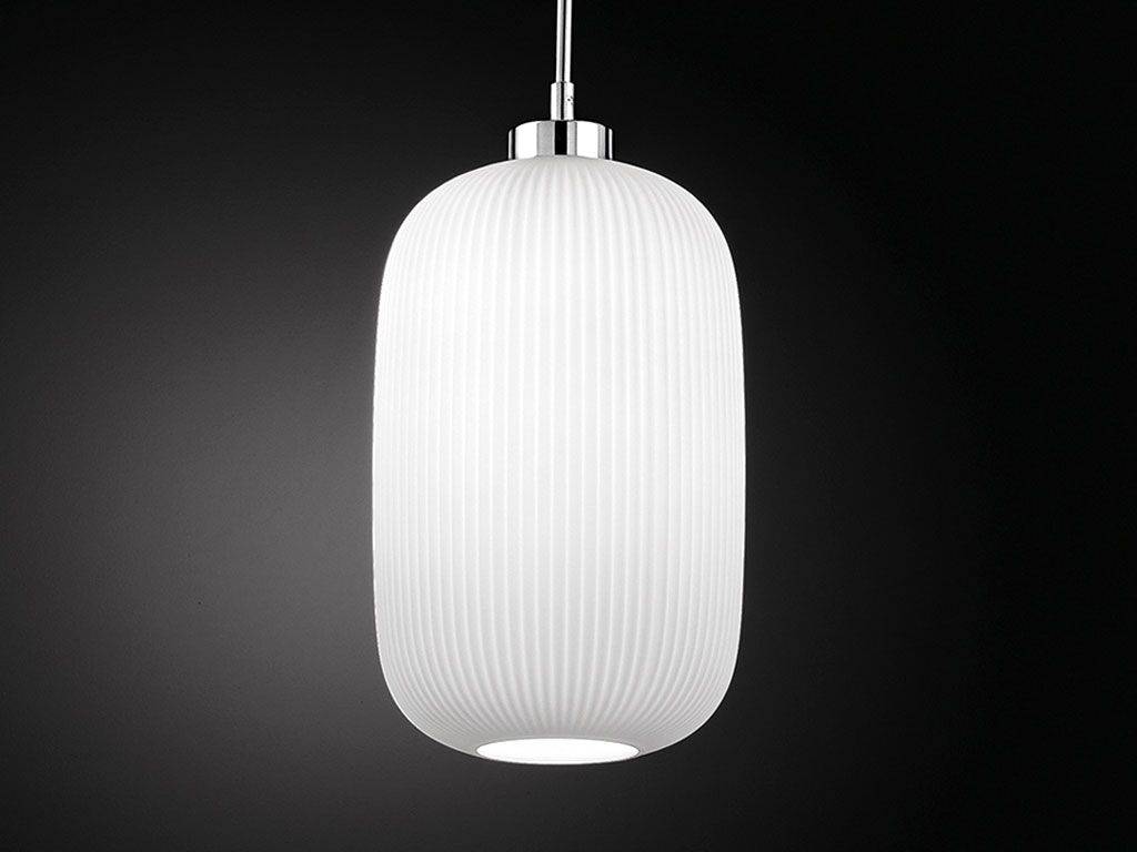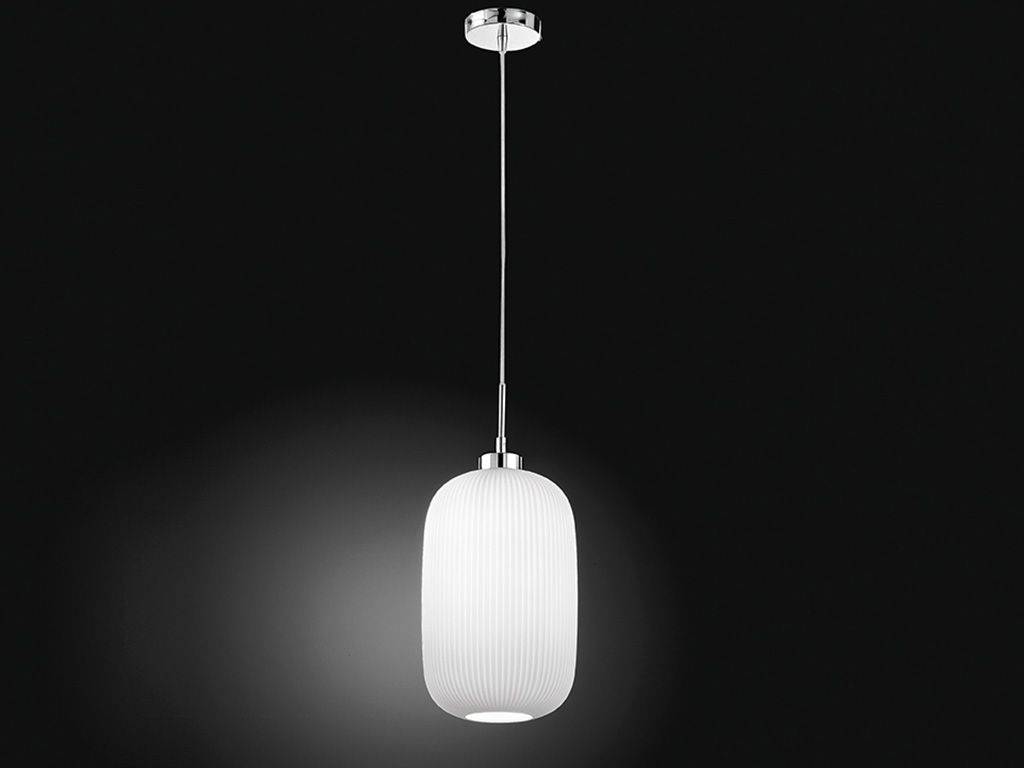 Suspension aus Chrome glänzend mit Plisseeeffekt und in zwei Formen verfügbar, oval oder zylindrisch Form. Ideal in moderne Räume.