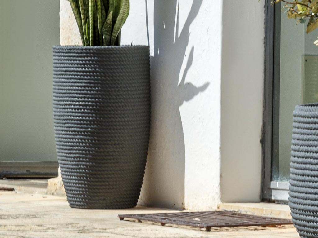 Der Bali Blumentopf mit Seiloptik ist eine moderne, elegante Pflanzvase mit schlankem und raffiniertem Design, ideal, um jedem Raum – innen wie außen – einen Hauch natürlicher Eleganz zu verleihen.