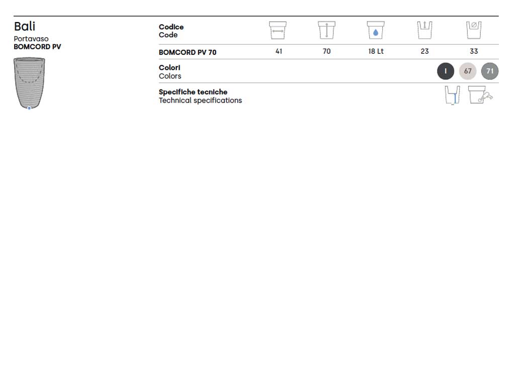 Der Bali BOMCORD PV Blumentopf eignet sich ideal für Zierpflanzen, Farne, Sansevierien, Ficus oder kleine Sträucher und wird so zu einem vielseitigen und stilvollen Designobjekt mit großer visueller Wirkung.