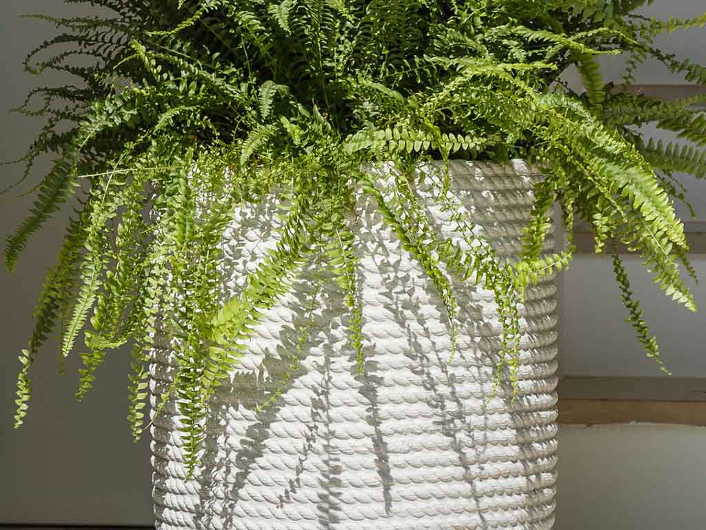 Wählen Sie den Bali Hohen Blumentopf mit Seiloptik, um Ihren Räumen einen natürlichen und modernen Stil zu verleihen.