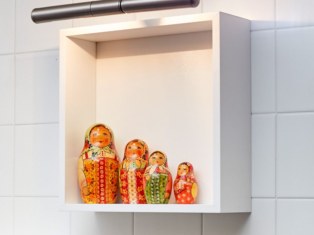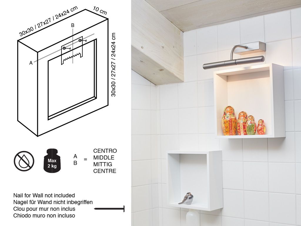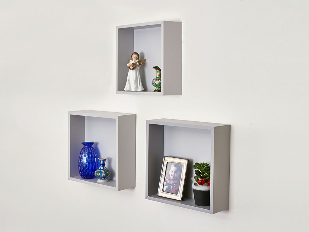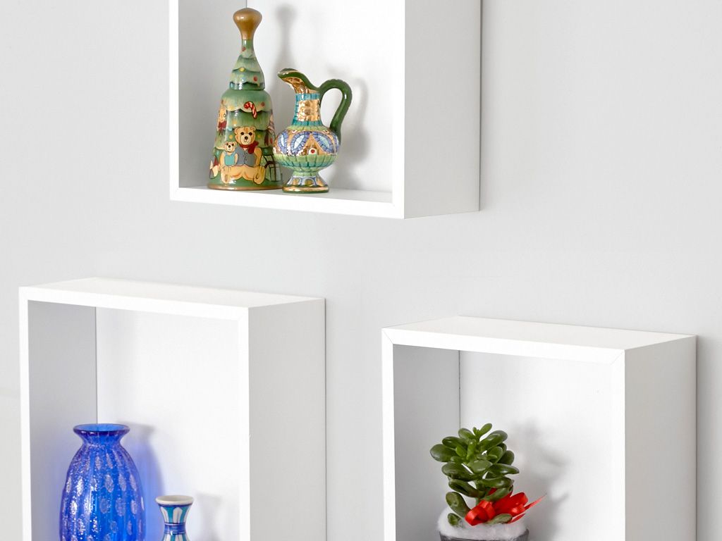 Tris-Würfel aus Holz, die perfekt wie Wanderegal oder Stütze sind. Die sind für Dinge zur Hände, Nippes oder wie Behälter nutzbar. Die sind in 3 Farben, Weiß, grauer Stein, Turteltaube verfügbar.
