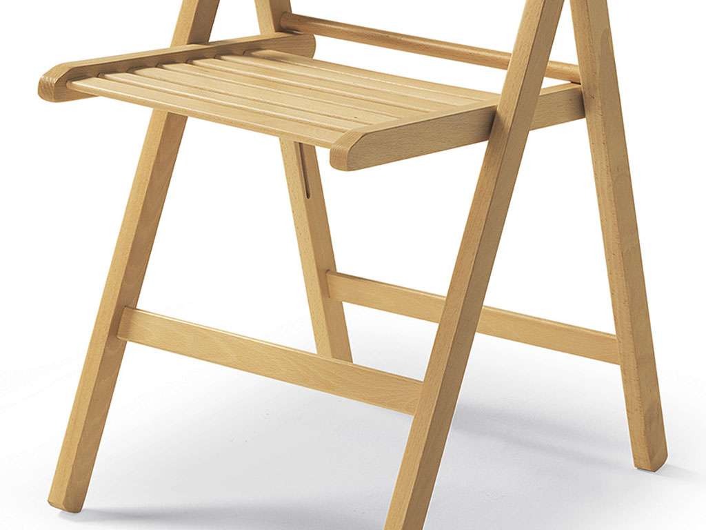 Klappstuhl aus Holz mit Gestell aus massivem Buchenholz und Sitz aus Stangen. Ideal als moderner und platzsparender Stuhl.