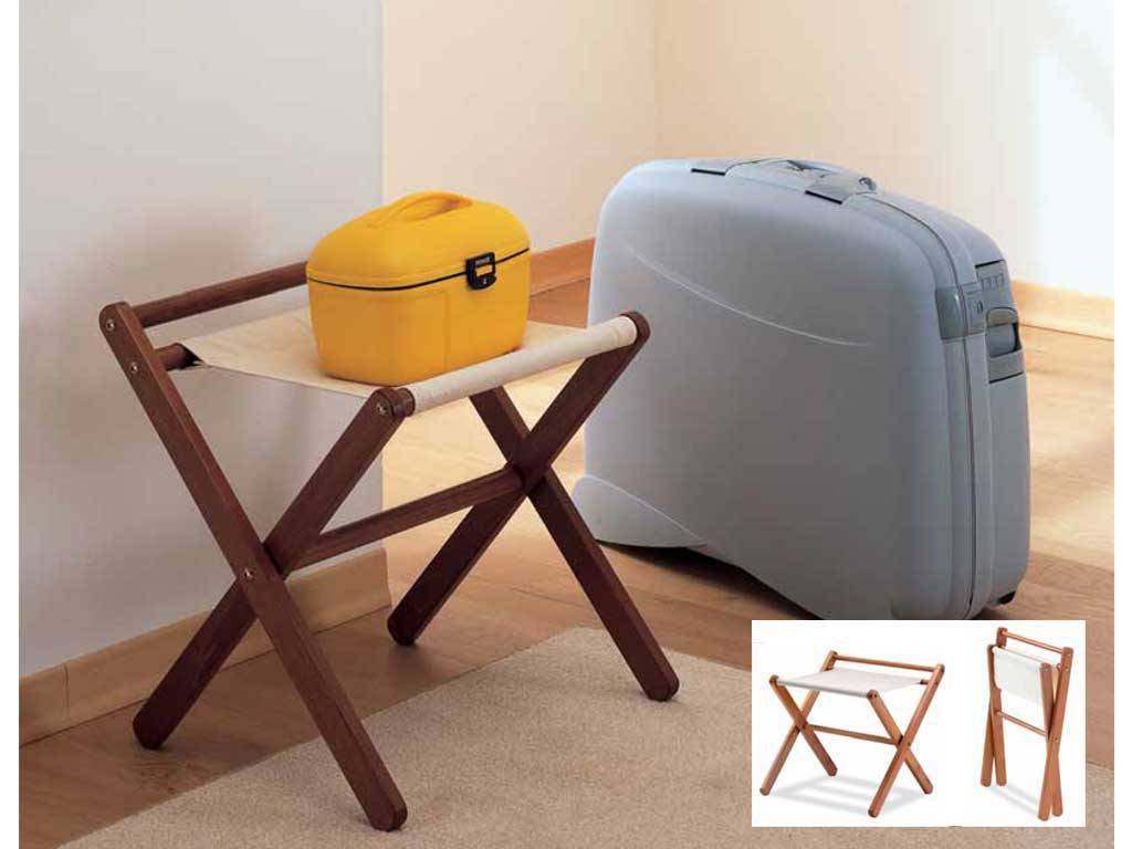 Dank ihres eleganten Stils und ihrer praktischen Eigenschaften wird die klappbare Kofferablage häufig in der Contract-Einrichtung von Hotels, Agriturismi und anderen Beherbergungsbetrieben verwendet. Sie ist ein Zubehör, das den Empfang verbessert und den Gästen ein angenehmeres Gefühl vermittelt.