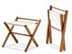 Kofferständer aus naturbelassenem oder nussbaumfarbenem Buchenholz mit Ablage aus Leder, klappbare Struktur.