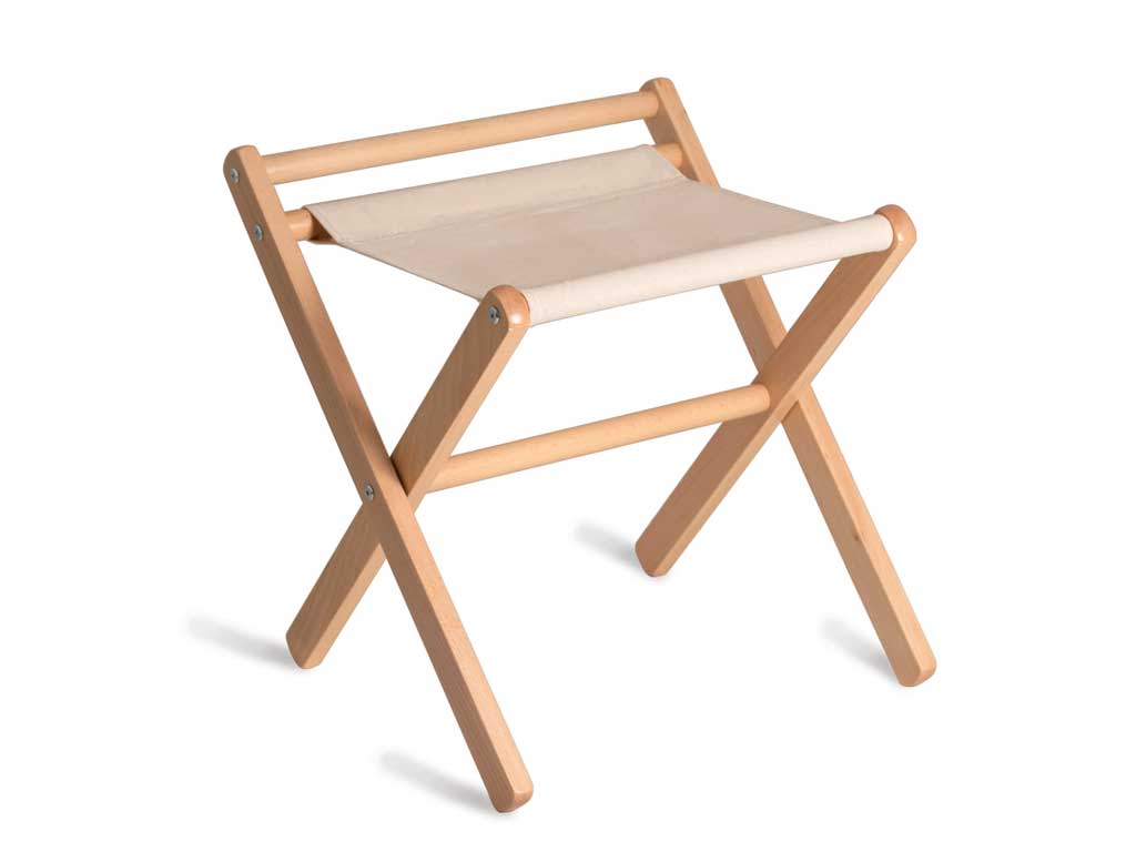 Diese klappbare Kofferablage ist aus massivem Buchenholz gefertigt und in zwei Farben erhältlich: Naturbuche und Nussbaum. Die obere Ablage besteht aus robustem Leder und ist ideal zum Abstellen von Koffern, Taschen oder auch Kleidungsstücken. Sie kann nicht nur als Kofferablage, sondern auch als Kleiderablage oder Hocker verwendet werden.