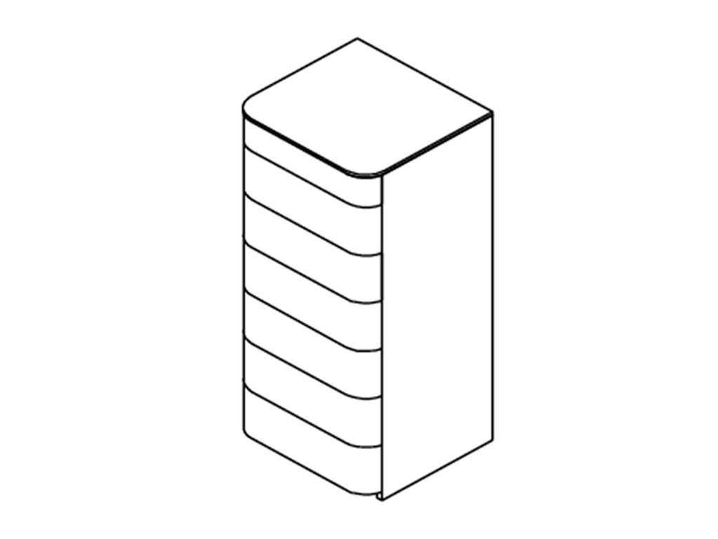 Kommode mit 7 Schubladen ohne Griffe oder mit "Drücken und Öffnen" System aus verschiedenen Feinarbeitungen vom Holz oder von glatt matt lackierten Farben (spezifizieren Sie den Farbe-Kode bei der Bestellung).