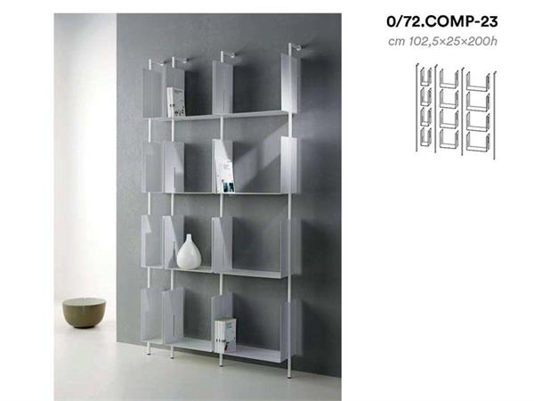 Man kann die Behälter in jede Position der Struktur stellen, um das Bücherregal zu personalisieren, innerhalb der Anlage anpassen nach Knopflöcher ab 12 cm belieben, auf der Rückseite die senkrechten elemente festgelegt auf die gewünschte Höhe Behälter legen mit der Bücherregal.